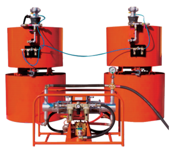 Позиция Единица ZHJQ-150/6 ZHJQ-200/3 Расход гидроизоляции л/мин 150 200 Давление гидроизоляции МПа 6 3 Потребление воздуха м 3 /ч 5 5 Давление подачи воздуха МПа 0.45~0.70 0.45~0.70 Размер смесительного бака мм φ1100*2100 φ1100*2100 Размер насоса для гидроизоляции мм 1200*550*700 1200*550*700 Объем смесительного бака м³ Около 1.0 Около 1.0 Вес одного смесительного бака (2 в комплекте) кг 230 230 Вес насоса для гидроизоляции кг 170 175 - Инъекционное заполнение легко протекающих воздушных зазоров;
