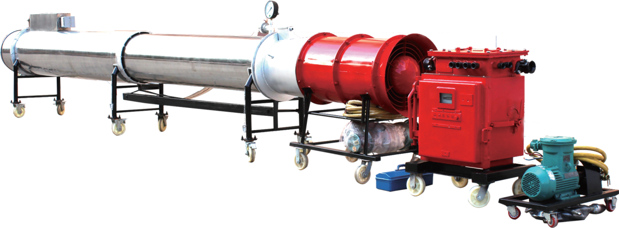 Используется для тушения пожаров и подавления взрывов газа в подземных зонах угольных шахт. Производит низкооксигеновую смесь инертных газов путем сжигания керосина, подходит для борьбы с подземными пожарами шахт и пожарами в забоях. Кроме того, это устройство также может использоваться для тушения пожаров и предотвращения взрывов в закрытых или полузакрытых помещениях.